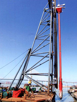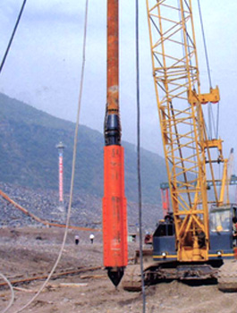 振沖器是振沖法施工中的特制機具。它產(chǎn)生水平向振動力振擠填料及周圍土體,而達到提高地基承載能力、減少沉降量、增加地基穩(wěn)定性、提高抗地震液化能力。 振沖法施工時除原地沖器外,尚需行走式起吊裝置,泵送輸水系統(tǒng),控制操作臺等。如工程單位缺乏起重機,本廠還供應(yīng)振沖器施工樁架,樁架有單邊滾管立柱式、液壓步履式、簡易履帶式等。